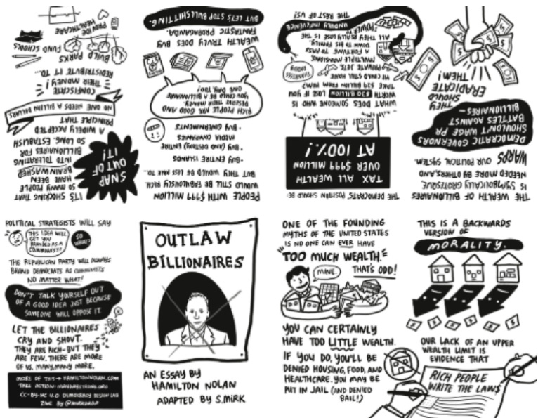 Sick of giving your data away to evil corporate overlords? Want to pull away from genocide profiteer Google? Want to protect yourself? Join this upcoming training by the trans futurist collective.Print & distribute Outlaw Billionaires - a zine written by Hamilton Nolan and illustrated by S. Mirk.